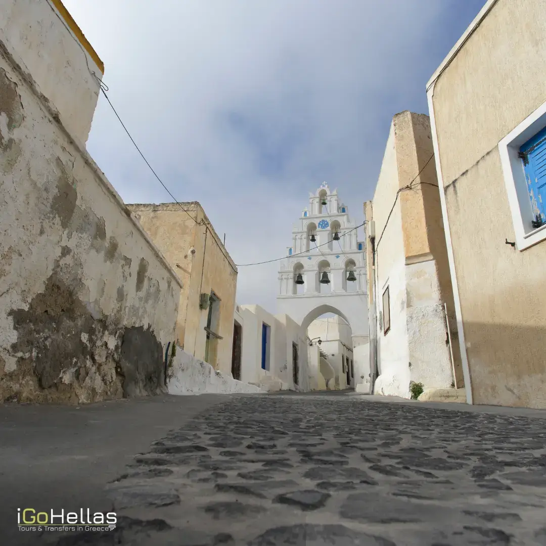 Megalochori’s architectural beauty whispers stories of Venetian occupation. Influences from this era remain etched in its structures, from the bell towers to the winding paths that tell tales of resilience amidst historical turmoil.